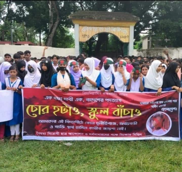 প্রধান শিক্ষকের পদত্যাগের দাবিতে শিক্ষার্থীদের পক্ষে বিপক্ষে অবস্থান
