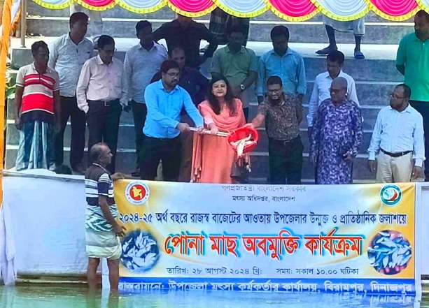 বিরামপুরে পোনা মাছ অবমুক্তি কার্যক্রমের উদ্বোধন