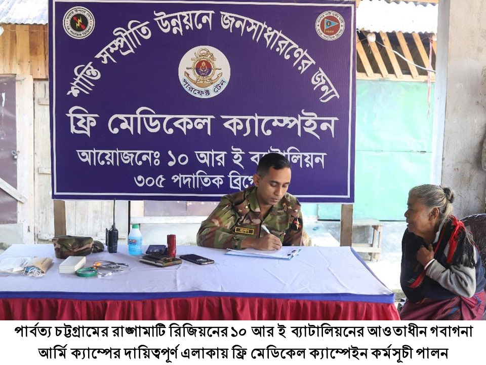 কাপ্তাই ১০ আর ই ব্যাটালিয়ন কর্তৃক বিনামূল্যে চিকিৎসা সেবা প্রদান।