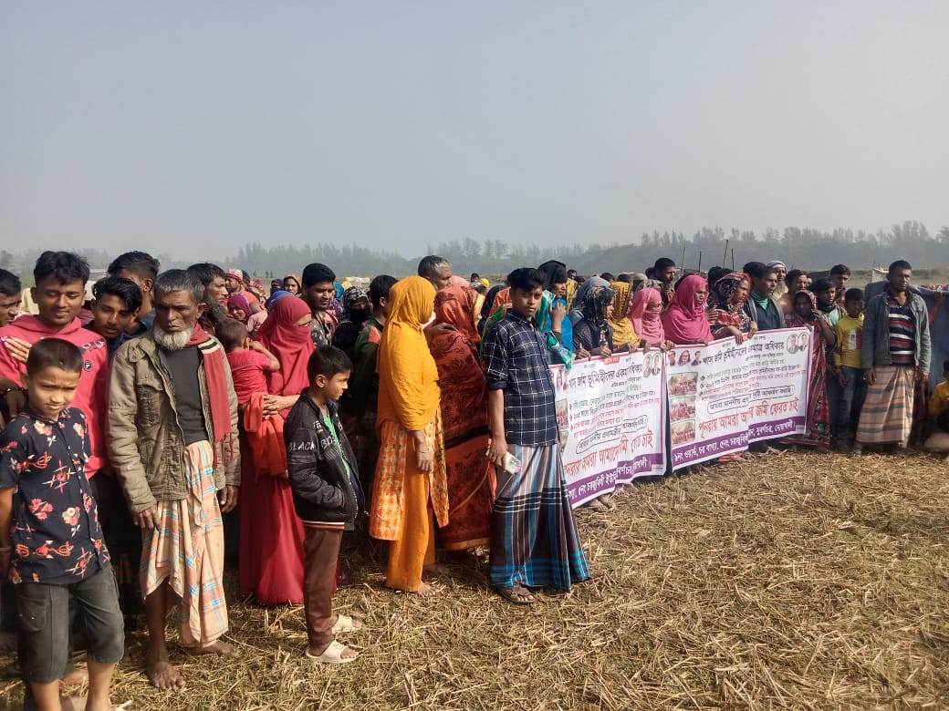সূবর্ণচরে ভূমিদস্যুদের বিরুদ্ধে ভূমিহীনদের মানববন্ধন