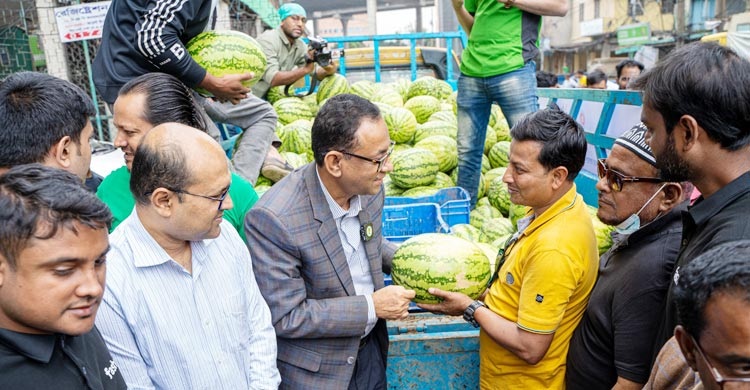 একশত টাকার তরমুজ কিনতে ক্রেতাদের উপচেপড়া ভিড়