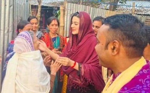 ভোটারদের দ্বারে দ্বারে মাহিয়া মাহি দিচ্ছেন নানা প্রতিশ্রুতি