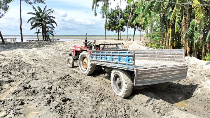 গঙ্গাচড়ায় নিয়মনীতির তোয়াক্কা না করে তিস্তার বালু হরিলুট
