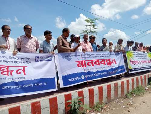 জামালপুরে সকল নদ-নদী ভরাট, দখল ও দোষণরোধে মানববন্ধন