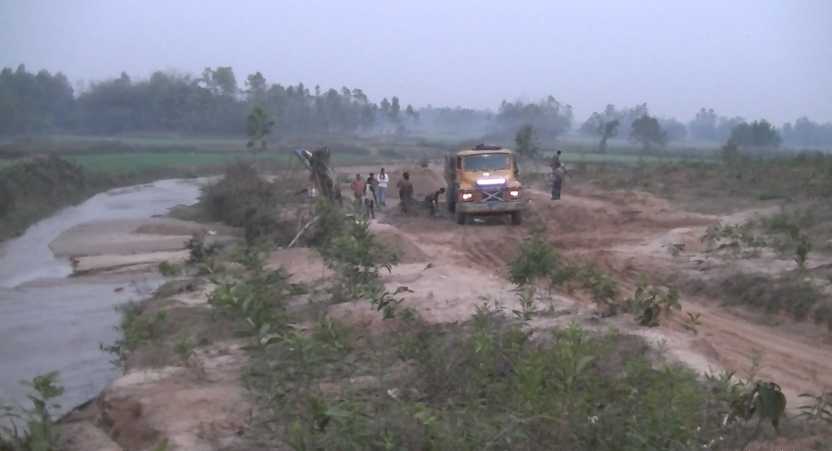 নিষেধাজ্ঞা উপেক্ষা করে ডেউফা নদীতে চলছে বালু উত্তোলন