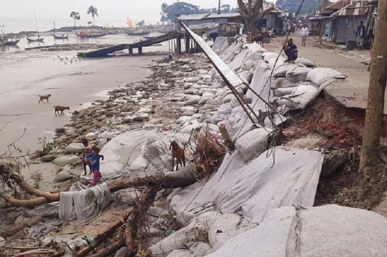 ভোলায় ১০ কিলোমিটার শহর রক্ষা বাধঁ অরক্ষিত স্রোতে তলিয়ে গেছে কার্গোসহ নির্মান সামগ্রী