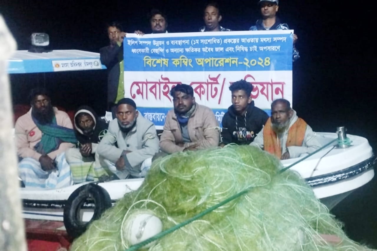 হাইমচরে জাটকা নিধনে আটক ৬ জেলের অর্থদন্ড