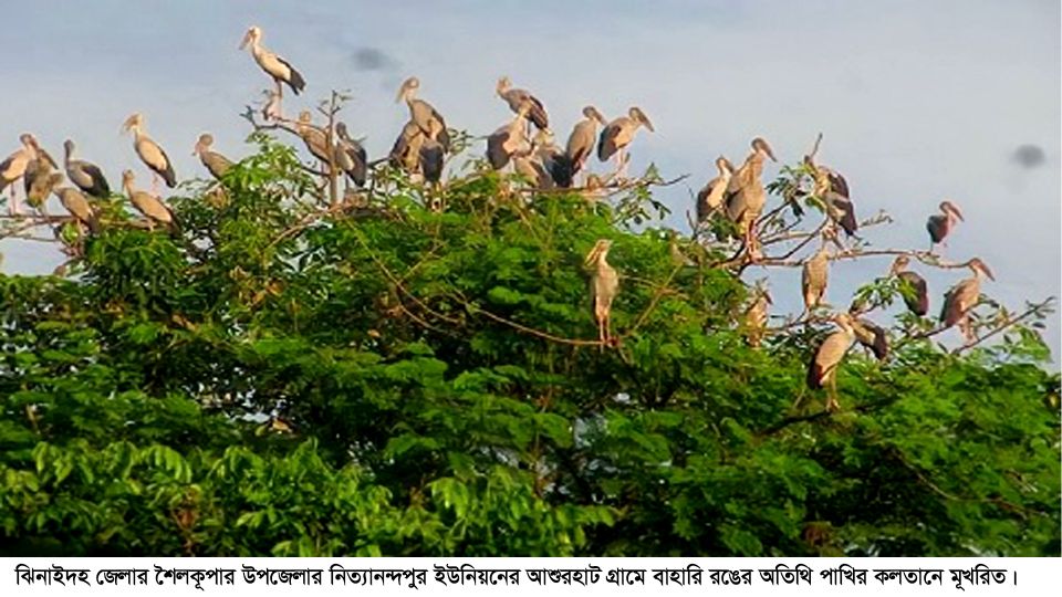 বাহারি রঙের অতিথি পাখির কলতানে মূখরিত ঝিনাইদহের আশুরহাট গ্রাম
