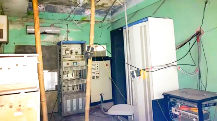 কাজীপুর টেলিফোন ভবনের ধস ঠেকানোর চেষ্টা বাঁশের খুঁটি দিয়ে