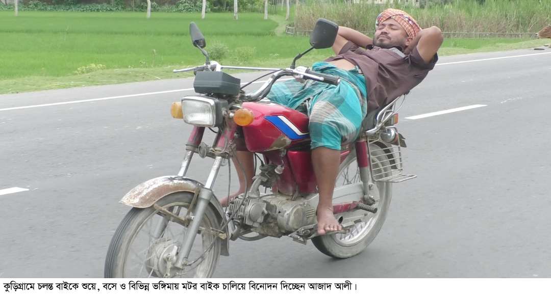 কুড়িগ্রামে চলন্ত বাইকে শুয়ে বসে সবই করেন আজাদ আলী