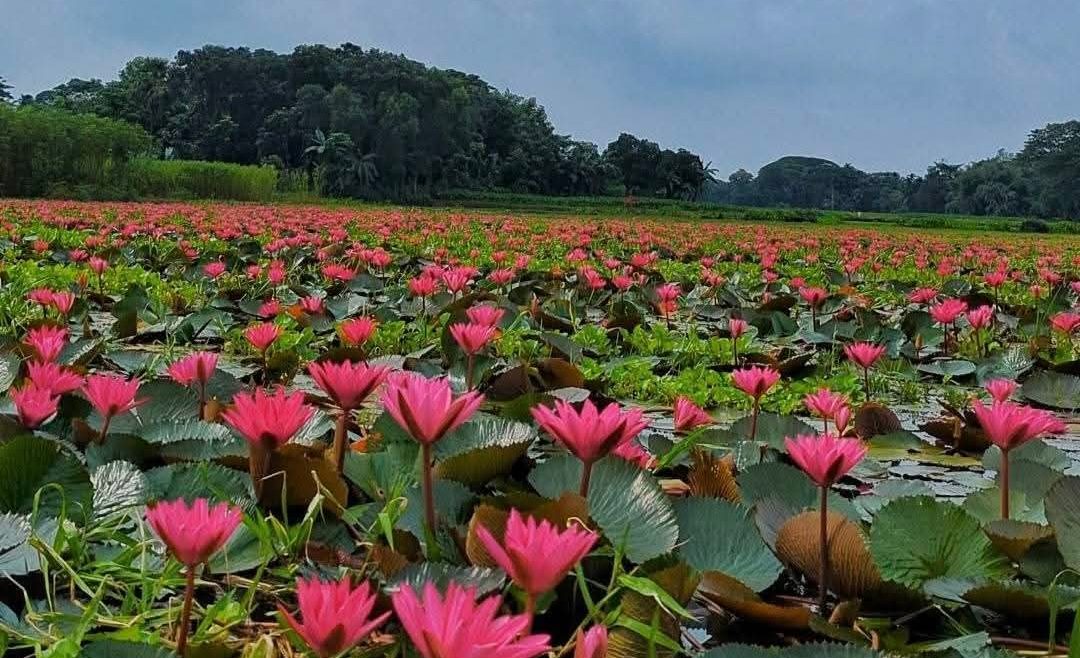 লাল শাপলার অপরূপ রূপে সেজেছে ত্রিশালের চেচুয়া-গলহর বিল