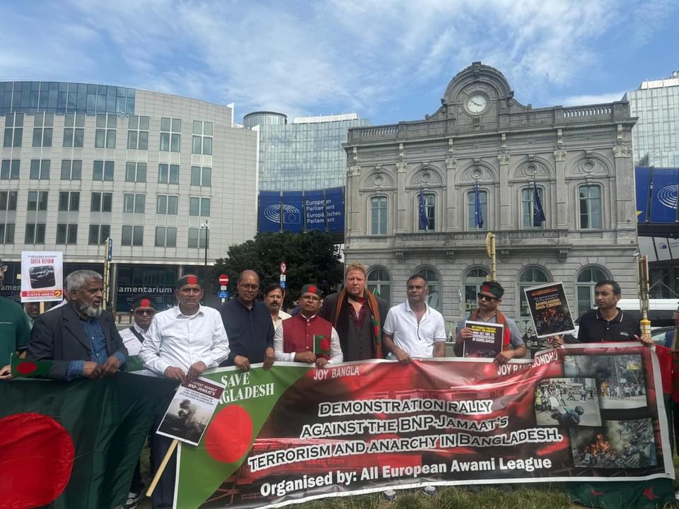 বেলজিয়াম আওয়ামী লীগের উদ্যোগে ইউরোপিয়ান পার্লামেন্টের সামনে প্রতিবাদ সভা