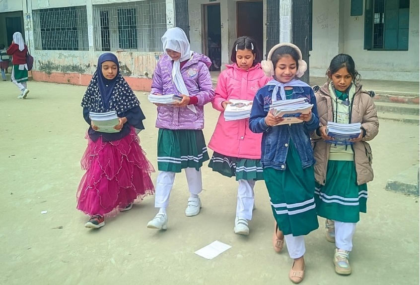 রংপুরে স্বল্প পরিসরে নতুন বই নিয়ে বাড়ী গেলেন শিক্ষার্থীরা