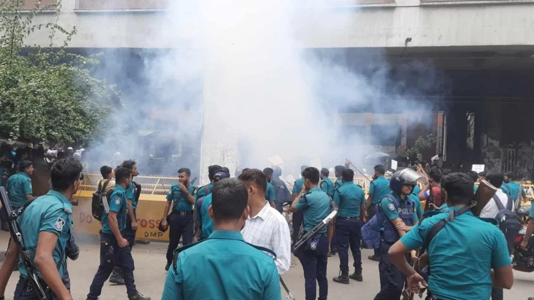পুলিশের ব্যারিকেড ভেঙে সচিবালয়ে প্রবেশের চেষ্টা , উন্ড গ্রেনেড নিক্ষেপ পুলিশের