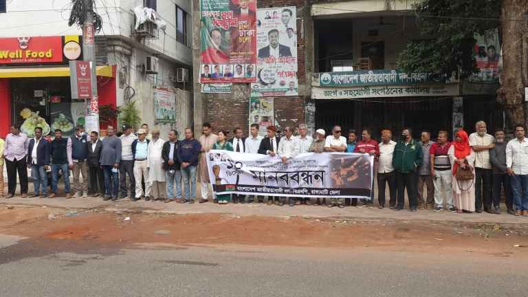 আন্তর্জাতিক মানবাধিকার দিবস উপলক্ষে রাঙামাটিতে বিএনপির মানববন্ধন।