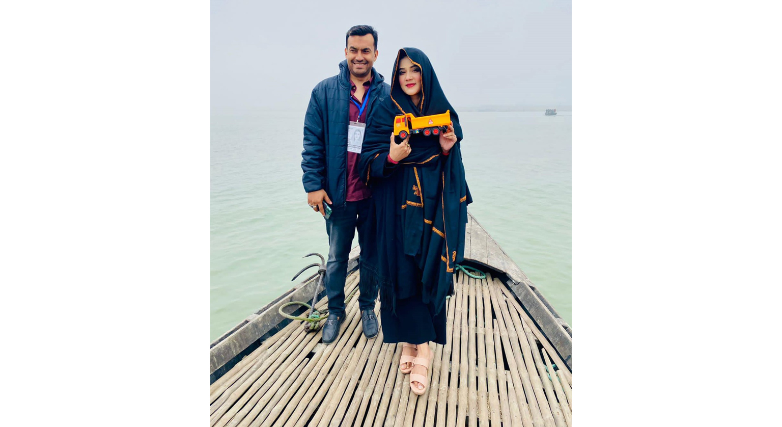 কুয়াশা ঘেরা সকালে নৌকায় চড়ে পদ্মার চরে গেলেন মাহি