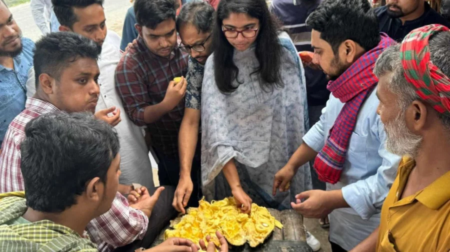 রাস্তায় দাঁড়িয়ে কাঁঠাল খেলেন নাহিদ-হাসনাত-সার্জিসরা