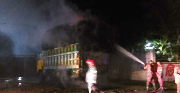 রাজশাহীতে পাটভর্তি ট্রাকে আগুন