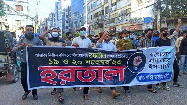 রাজশাহীতে হরতালের সমর্থনে দুই দফায় জামায়াতের বিক্ষোভ