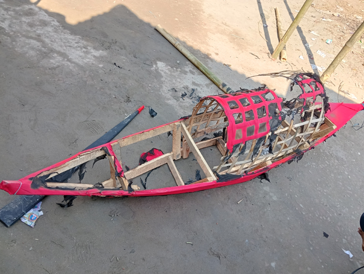 হাতীবান্ধায় নৌকায় অগ্নিসংযোগ; স্বতন্ত্র প্রার্থীকে আসামী করে থানায় অভিযোগ