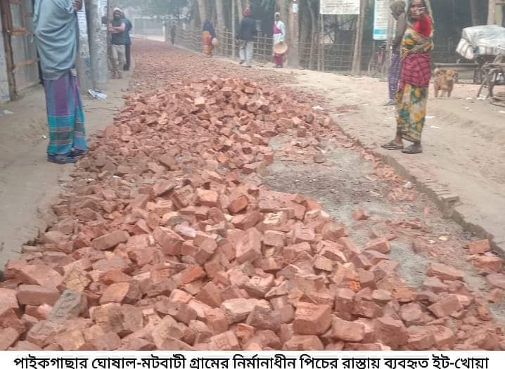 নির্মানাধীন পিচের রাস্তায় নিম্মমানের ইট-খোয়া বন্ধে ইউএনও দপ্তরে অভিযোগ