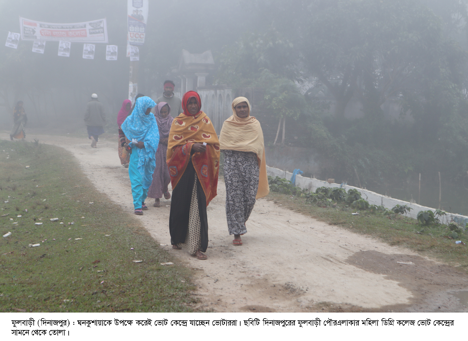 দিনাজপুর-৫ শীত ও ঘনকুয়াশা উপেক্ষা করে কেন্দ্রে ভোটারদের ভিড়