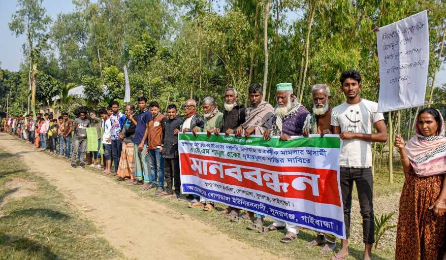 সুন্দরগঞ্জে চাঁদা দাবির মামলায় শাস্তির দাবিতে মানববন্ধন