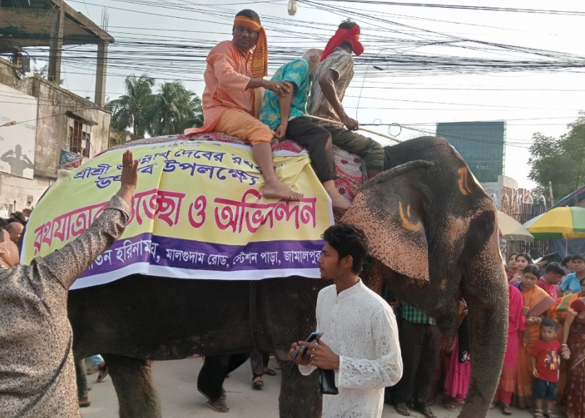 জামালপুরে এবার রথযাত্রার আকর্ষণ ছিল হাতি