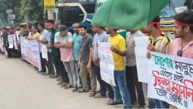 ভূঞাপুরে হিন্দু সম্প্রদায়ের উদ্দ্যোগে মানববন্ধন