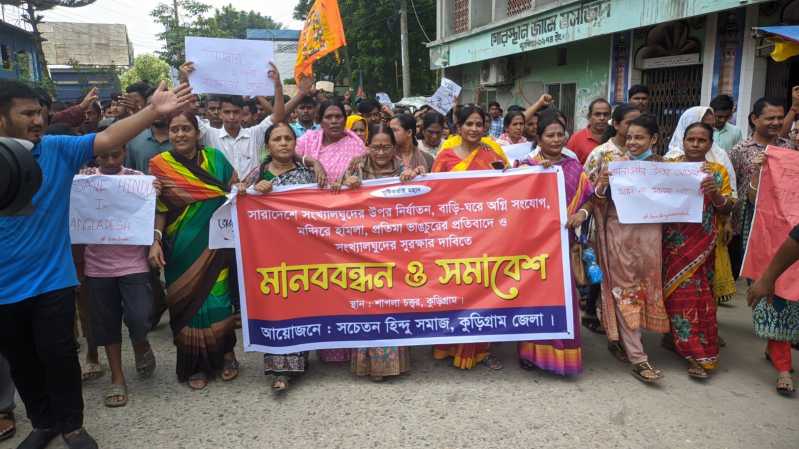 কুড়িগ্রামে হিন্দু সমাজের বিক্ষোভ