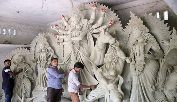 চট্টগ্রামে মন্দির-মণ্ডপ সাজছে প্রতিমায়