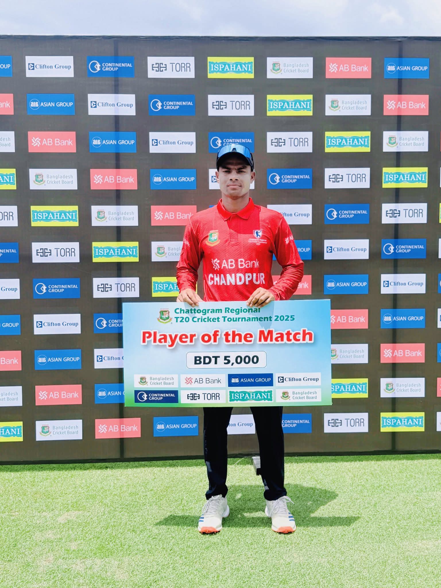চট্টগ্রাম রিজিওনাল টি-২০ টুর্নামেন্টে ফরিদগঞ্জের সাদ্দামের বাজিমাত