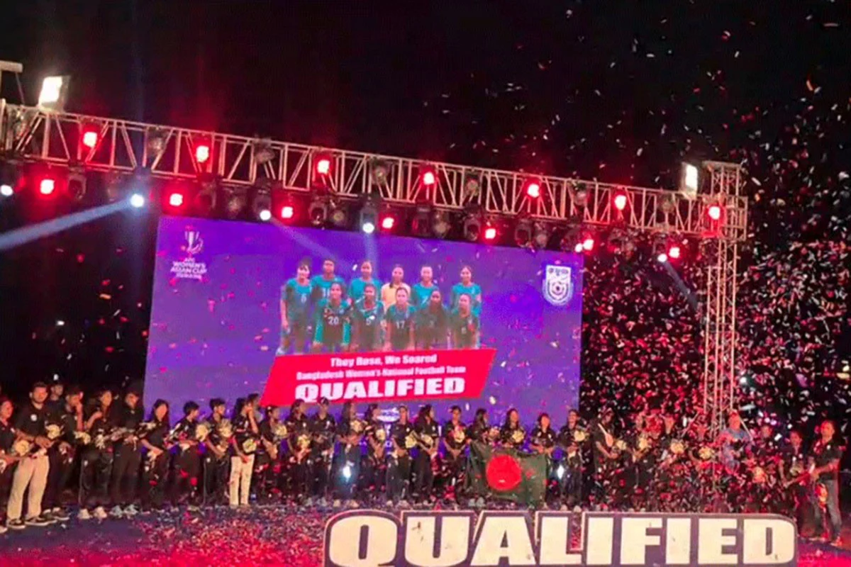 রাত সোয়া তিনটায় নারী ফুটবলারদের সংবর্ধনা দিল বাফুফে