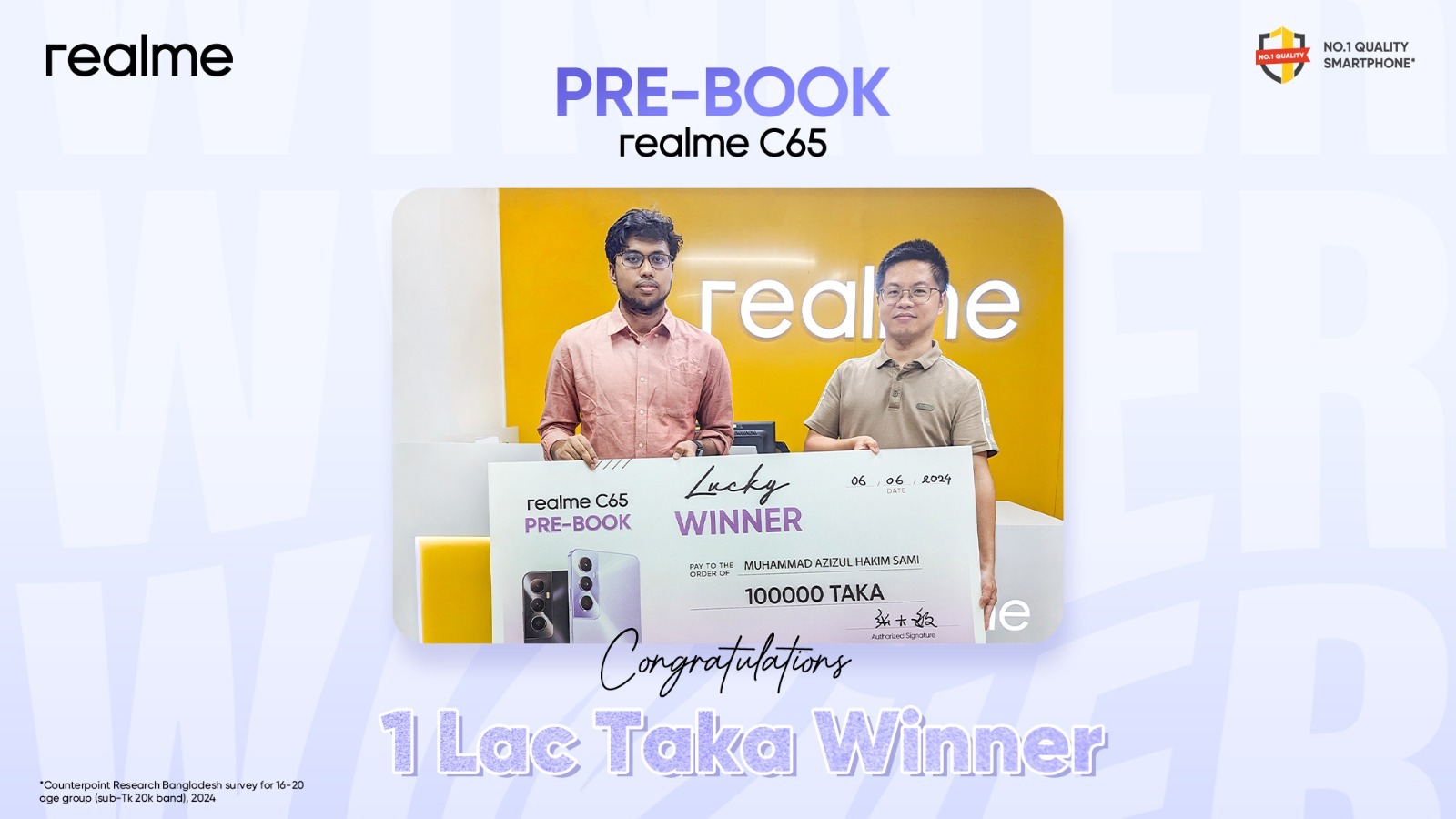 রিয়েলমি ক্যাম্পেইন বিজয়ী পেলেন ১ লাখ টাকার পুরস্কার