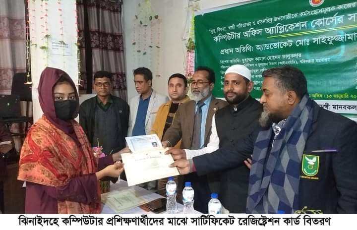 ঝিনাইদহে কম্পিউটার প্রশিক্ষণার্থীদের মাঝে সার্টিফিকেট বিতরণ