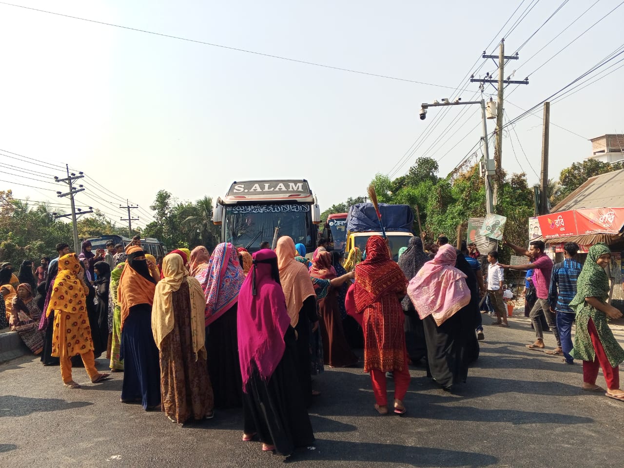 কারখানা বন্ধের প্রতিবাদ ও বকেয়া বেতনের দাবিতে রাজধানীর বনানী এলাকায় সড়ক অবরোধ করে বিক্ষোভ করেছেন পোশাক শ্রমিকরা। গতকাল শনিবার সকাল