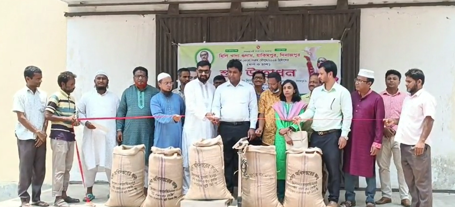 প্রান্তিক পর্যায়ের কৃষকের নিকট থেকে দিনাজপুরের হিলিতে সরকারি খাদ্য গুদামে চলতি মৌসুমের বোরো ধান ও চাল সংগ্রহ অভিযানের উদ্বোধন করা