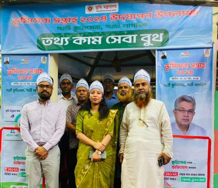 স্মার্ট ভূমিসেবা,স্মার্ট নাগরিক প্রতিপাদ্য কে সামনে রেখে ভূমিসেবা সপ্তাহ ২০২৪ উদযাপন উপলক্ষে সারাদেশের মত গাজীপুরের কালীগঞ্জে ও শনিবার (৮ জুন)