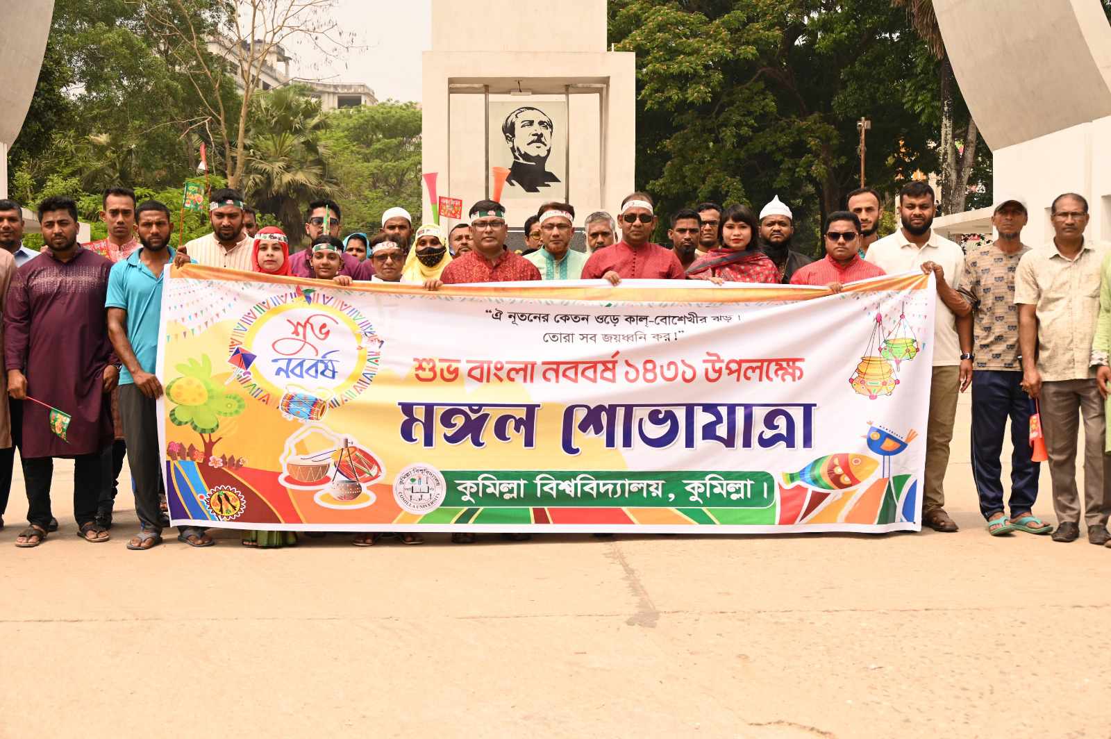মঙ্গল শোভাযাত্রার মাধ্যমে নতুন বছরকে বরণ করলো কুবি