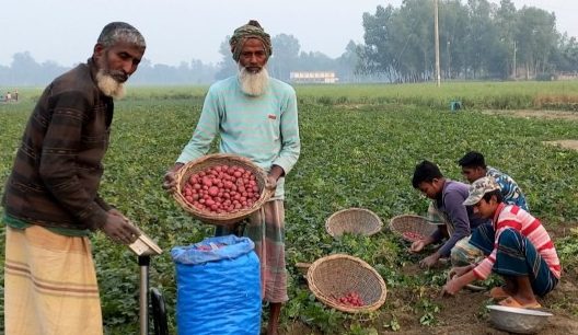 সিরাজগঞ্জের উল্লাপাড়ায় আবাদী মাঠ থেকে আলু ফসল তোলা শুরু হয়েছে। আলুর ভালো হারে ফলন আর ভালো দামে কৃষকেরা বেশ খুশী