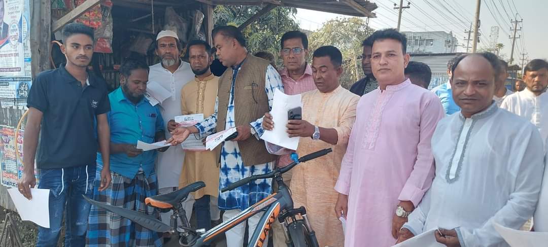 দ্রব্যমূল্যের ঊর্ধ্বগতির প্রতিবাদে লিফলেট বিতরণ