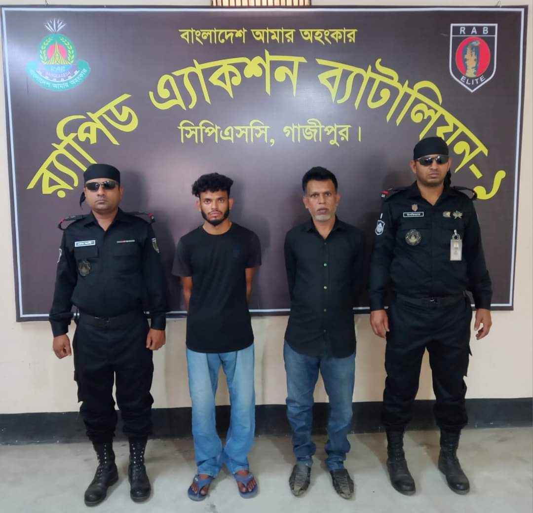 গাজীপুরের শ্রীপুরে চাঞ্চল্যকর যুবক আব্দুল্লাহ হত্যাকাণ্ডের ঘটনায় জড়িত অন্যতম আসামি পিতা ও পুত্রকে গ্রেপ্তার করেছে র্যাব। বৃহস্পতিবার (১৪ মার্চ )দুপুরে
