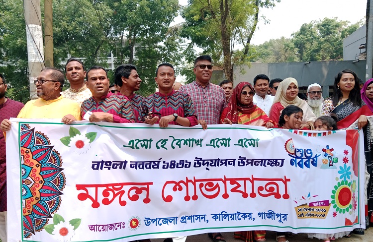 গাজীপুরের কালিয়াকৈরের উপজেলা প্রশাসনের উদ্যোগে ১৪৩১ বঙ্গাব্দের পহেলা বৈশাখ নববর্ষ উদযাপিত হয়েছে। নববর্ষ উদযাপন উপলক্ষ্যে রোববার প্রশাসনের পক্ষ থেকে র্যালি