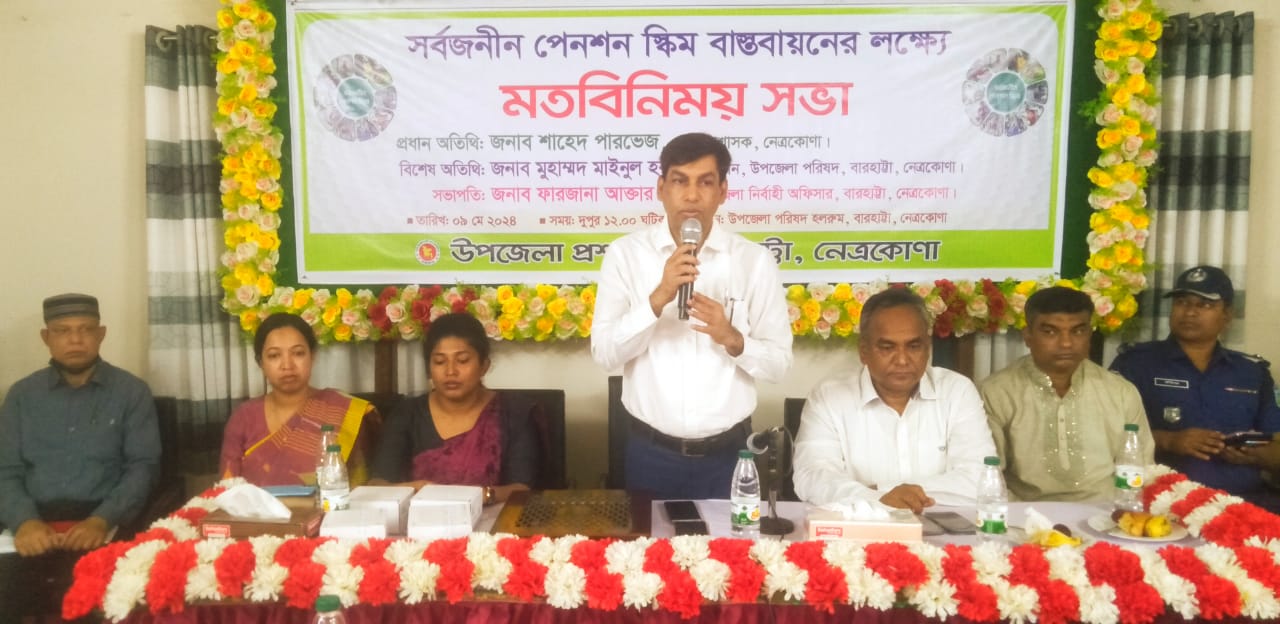 নেত্রকোনা বারহাট্টায় উপজেলা প্রশাসনের আয়োজনে ৯ মে বৃহস্পতিবার বেলা ১২ ঘটিকায় সর্বজনীন পেনশন স্কিম বাস্তবায়নের লক্ষ্যে মতবিনিময় সভা অনুষ্ঠিত হয়।
