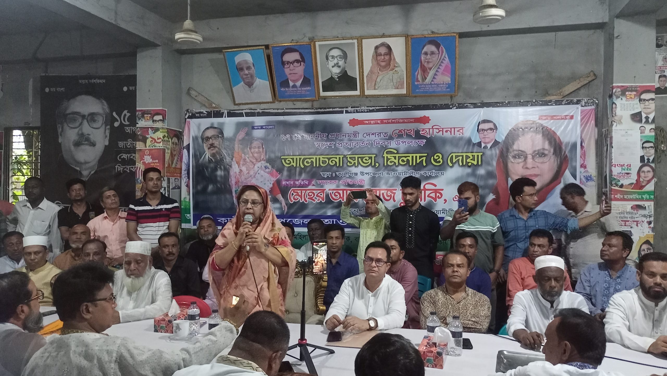 প্রধানমন্ত্রী শেখ হাসিনার স্বদেশ প্রত্যাবর্তন দিবস উপলক্ষে কালীগঞ্জ উপজেলা আ’লীগের উদ্যোগে আলোচনা সভা, মিলাদ ও দোয়া অনুষ্ঠিত হয়। শনিবার (১৮