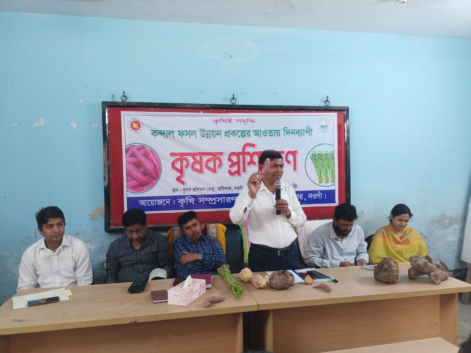 নওগাঁর রাণীনগরে কন্দাল ফসল উন্নয়ন প্রকল্পের আওতায় দিনব্যাপী কৃষক প্রশিক্ষণ অনুষ্ঠিত হয়েছে। ৩এপ্রিল (বুধবার) উপজেলা কৃষক প্রশিক্ষণ কেন্দ্রে মোট চার
