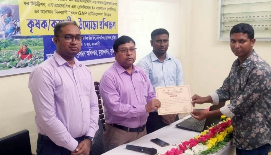 কুমিল্লার মুরাদনগর উপজেলায় সারা দিনব্যাপী “কৃষক জিএপি সার্টিফিকেশন” বিষয়ক অর্ধশত কৃষক/কৃষানী ও উদ্যোক্তাদের প্রশিক্ষন প্রদান করা হয়েছে। প্রশিক্ষন শেষে প্রশিক্ষানার্থীদের