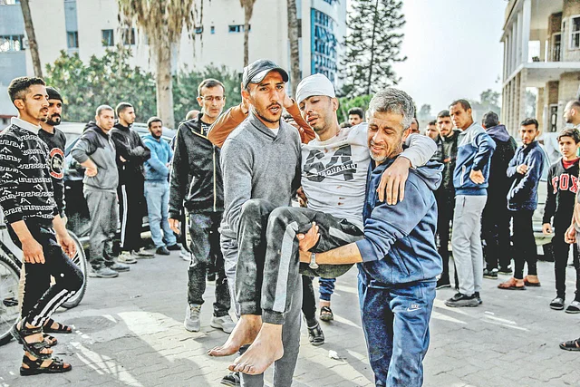 ইসরায়েলের হামলা থামছে না। প্রতিদিনই বাড়ছে হতাহতের সংখ্যা। আহত এক ব্যক্তিকে নিয়ে আসা হচ্ছে হাসপাতালে। গত বুধবার গাজার আহিল আরব