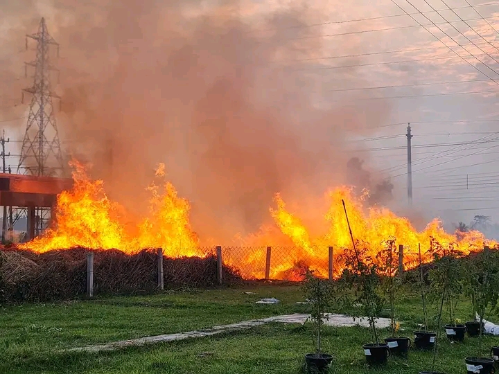 বাকৃবির কেন্দ্রীয় খামারের খড়ের গাদায় আগুন
