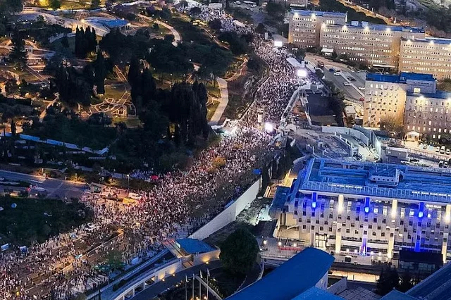 ইসরায়েলের তেল আবিবে প্রতিরক্ষা মন্ত্রণালয়ের সামনে সড়কে আগুন জ্বালিয়ে হাজারো মানুষের প্রতিবাদ-বিক্ষোভ। ইসরায়েলের পার্লামেন্টের সামনে হাজারো মানুষ জড়ো হয়ে বিক্ষোভ